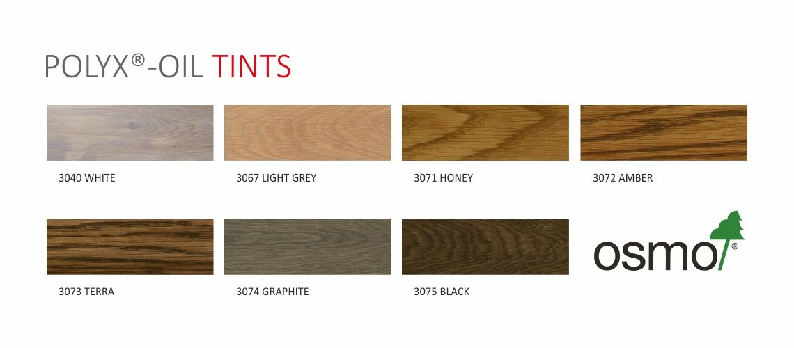 Osmo Polyx®-Oil Tints is a transparent, satin wood finish that combines the advantages of natural oils and waxes into a single product. It is stain-resistant, water-repellent and abrasion-resistant and results in a surface that is pleasant to the touch.